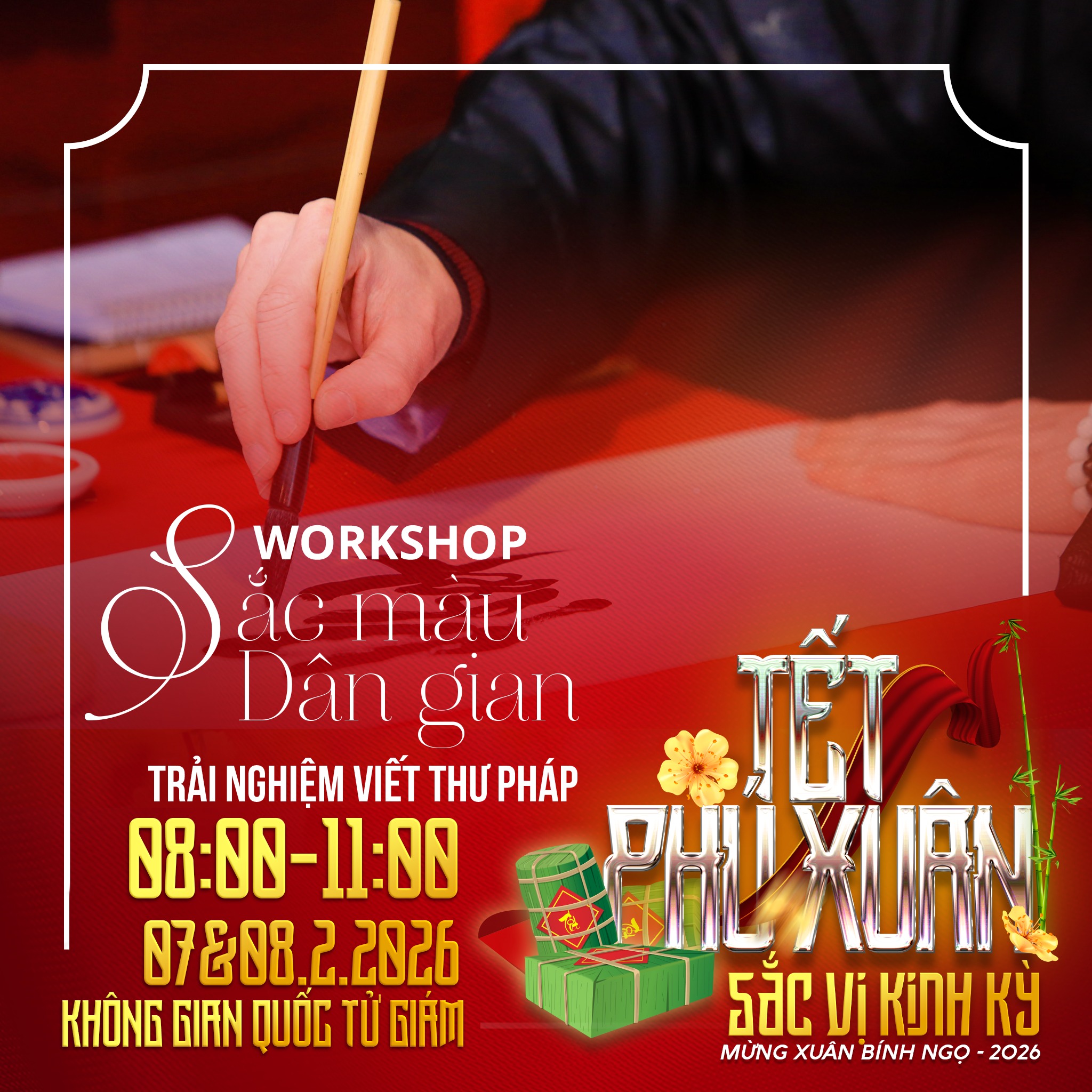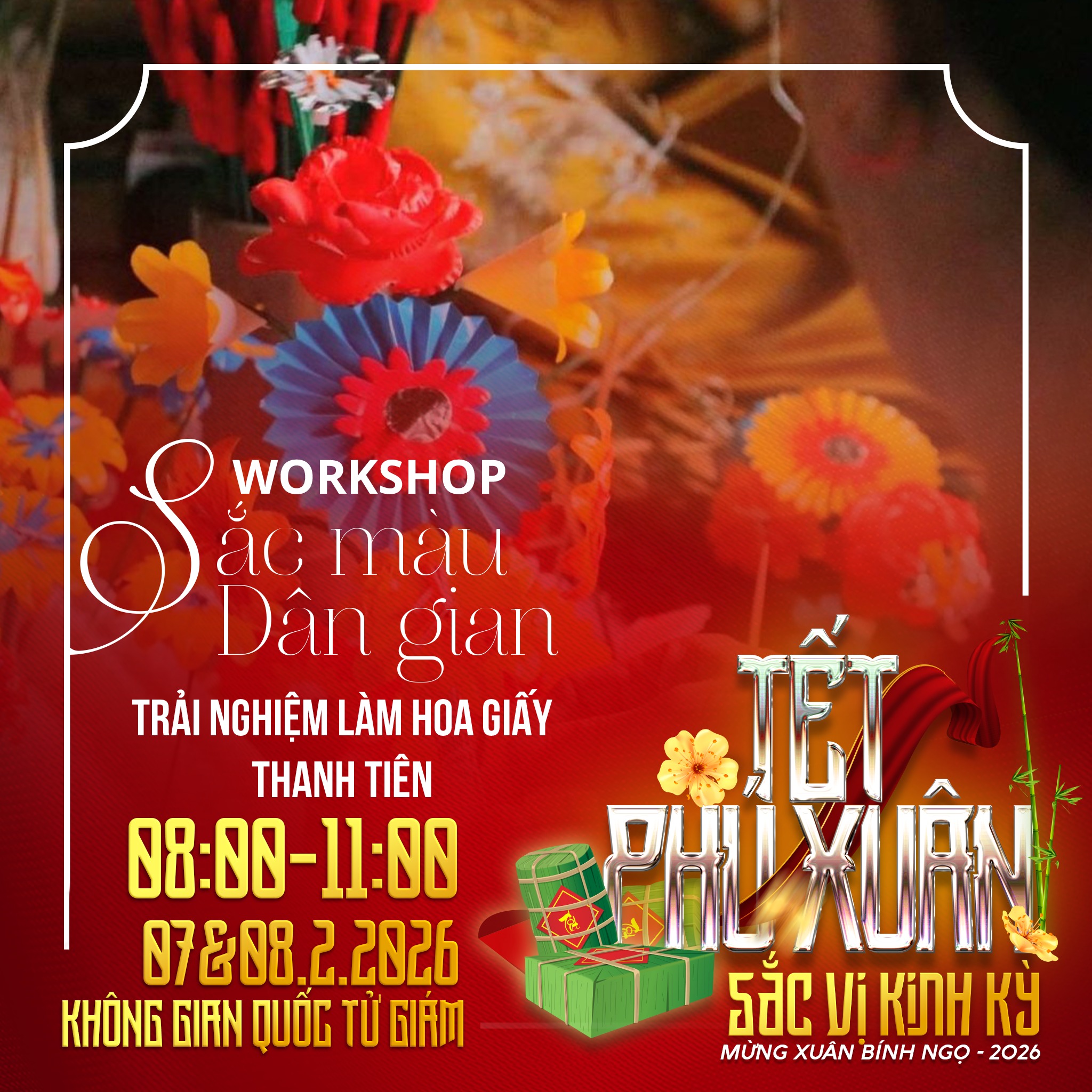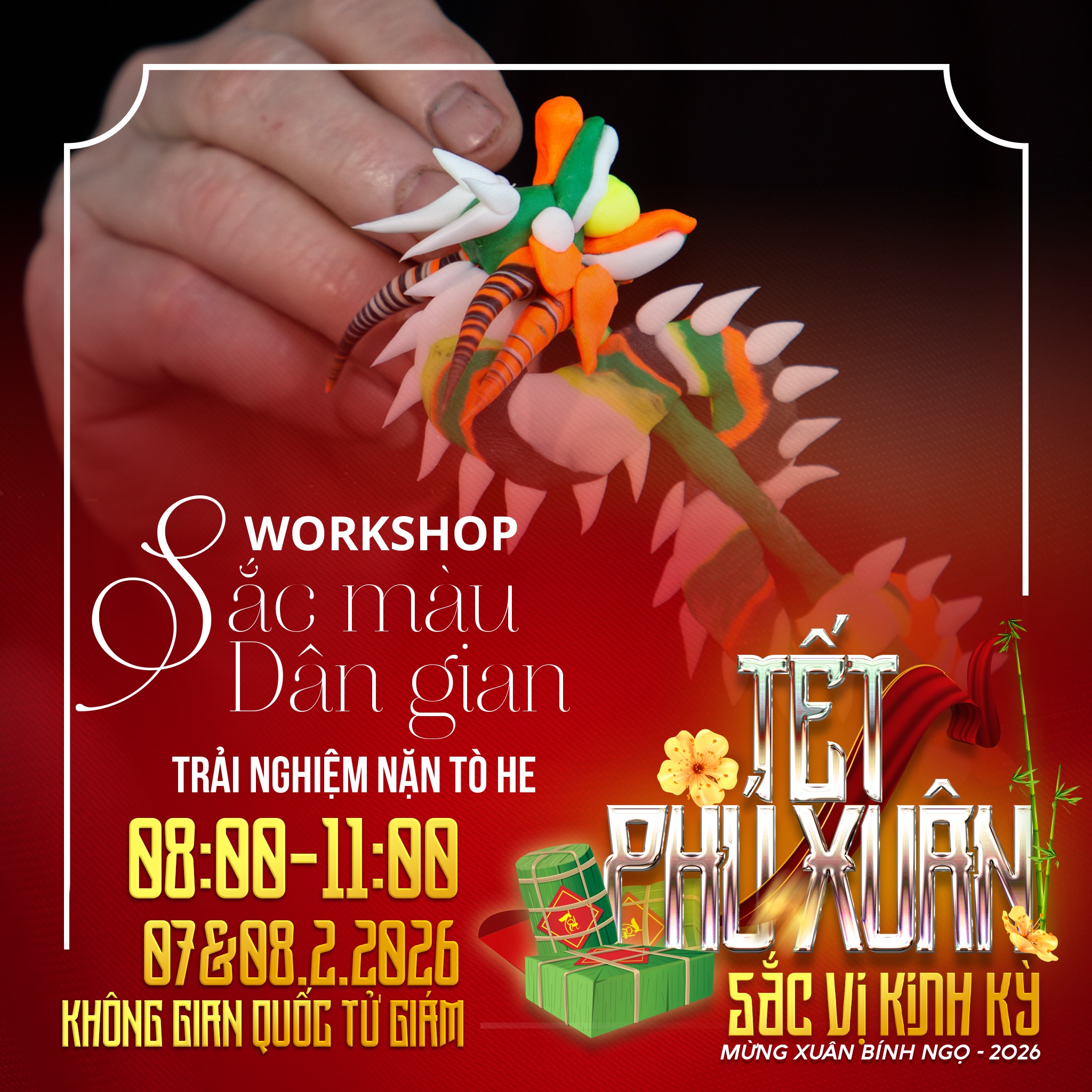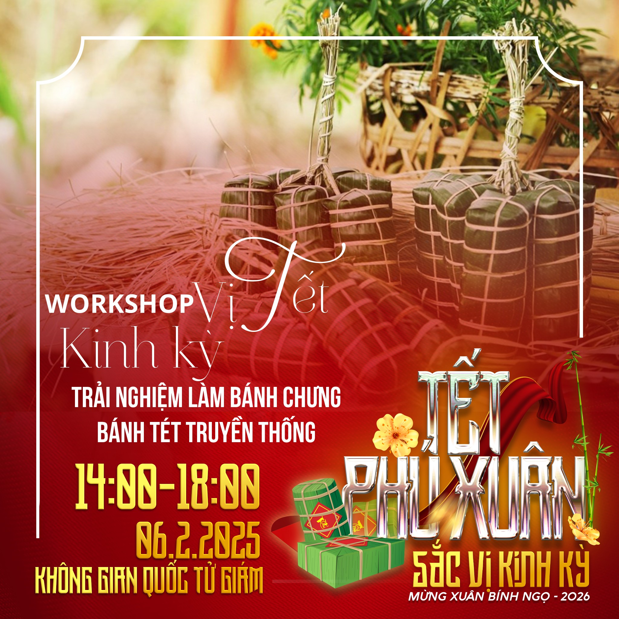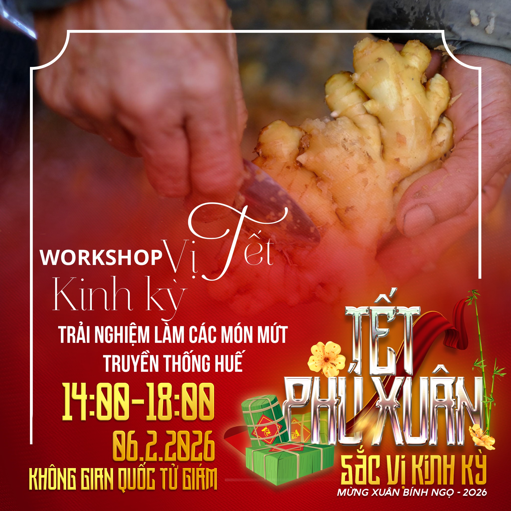 🍯 "VỊ" – ĐẬM ĐÀ HƯƠNG TẾT CỐ ĐÔ Thưởng thức vị ngọt ngào của mứt gừng, mứt sen Thần Kinh; cùng trải nghiệm gói bánh chưng, bánh tét, nặn tò he, làm hoa giấy Thanh Tiên hay xin chữ ông đồ. Một bầu không khí "Tết xưa" nồng đượm ngay giữa lòng phố hiện đại.