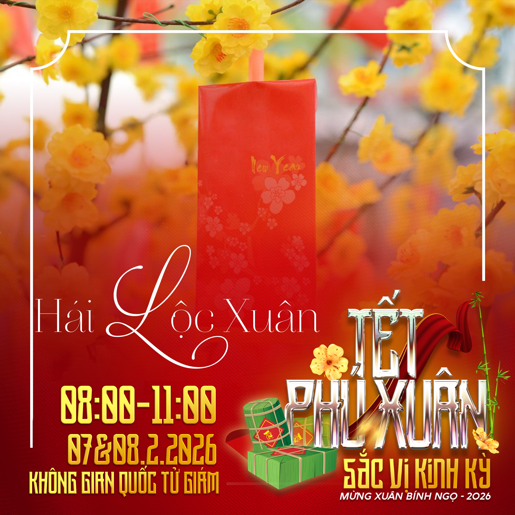 🔥 Lịch trình: 02/02 – 08/02/2026 (15 – 21 Tháng Chạp) 📍 Địa điểm: Trục đường 23 Tháng 8 - Công viên Thương Bạc - Quốc Tử Giám - Sân Hàm Nghi.